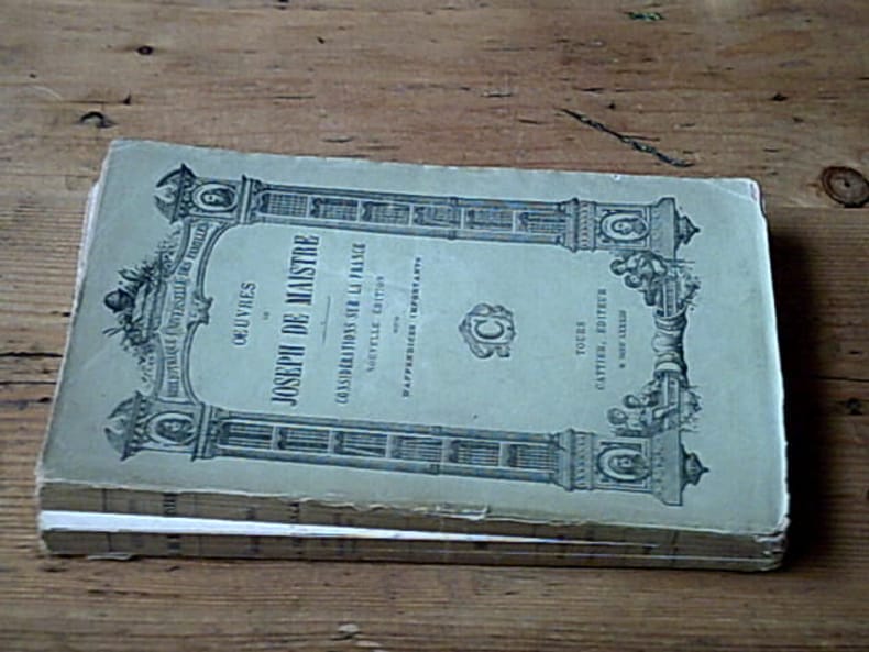 'Bons Livres', Editions exactes et Belles. Considérations sur la France, Texte intégral d'après l'édition revue par J. de Maistre lui-même. Classification Dewey : 840.08-XIX ème siècle