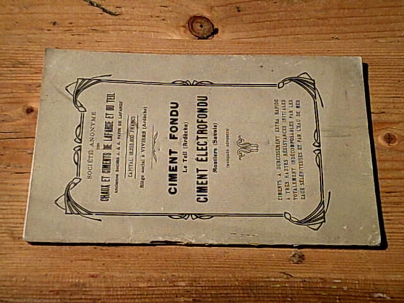 ,Paris, Imprimerie d'art Jules Céas et fils 1922, 50+110+110+51 pp., 1 vol. in 12 relié Ciment blanc, ciment extra blanc, ciment gris clair spécial pour carreaux, produits spéciaux pour pierres artficielles, carreaux, céramiques, etc , 110 pp. - Notice sur le ciment Pierre, 51 pp. . Reliure demi-percaline, dos lisses ornés de filets dorés, titres dorés, cachets (ex-libris), nombreuses illustrations in et hors-texte.