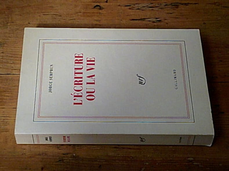 « Quand je suis rentré de Buchenwald, à la fin d'avril 1945, j'avais un peu plus de vingt ans. Depuis l'âge de sept ans, j'avais décidé d'être écrivain. Dès mon retour, j'ai donc voulu écrire sur l'expérience que je venais de vivre. Quelques mois plus tard, après avoir écrit, réécrit et détruit des centaines de pages, je me suis rendu compte qu'à la différence d'autres expériences, notamment celles de Robert Antelme et surtout de Primo Levi, qui se sont dégagés de l'horreur de la mémoire par l'écriture, il m'arrivait précisément l'inverse. Rester dans cette mémoire, c'était à coup sûr ne pas aboutir à écrire un livre, et peut-être aboutir au suicide. J'ai donc décidé d'abandonner l'écriture pour choisir la vie, d'où ce titre. Et ce "ou". » Lequel titre lui viendra dix-sept ans plus tard, un samedi d'avril alors qu'il rédige Netchaïev est de retour : « Je racontais une scène où l'un des personnages du roman se rendait à Buchenwald pour tenter de retrouver un compagnon de résistance déporté. Tout cela devait tenir en deux pages. Ce jour-là, l'écriture a dérapé complètement. Je me suis retrouvé en train d'écrire, à la première personne, un autre livre : c'étaient les premières pages de L'Écriture ou la Vie. L'inconscient, ou je ne sais quoi, m'avait joué un curieux tour : ce samedi 11 avril était l'anniversaire de la libération de Buchenwald, et la première nouvelle entendue le lendemain fut l'annonce du suicide de Primo Levi... Dans ces conditions, il me fallait évidemment mener ce livre à son terme ». Exemplaire en parfait état.
