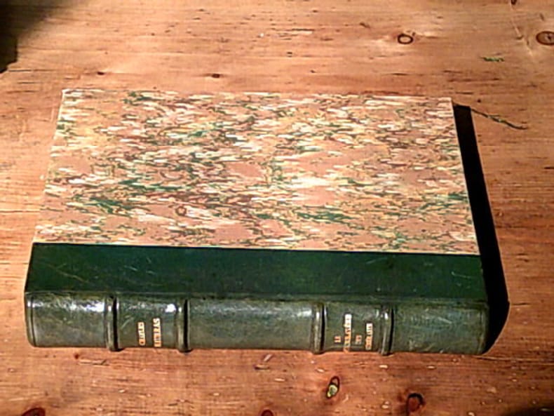 Limoges, Imprimerie de Barbou Frères, s.d. [1862]. Un vol. au format in-4 (273 x 173 mm) de 1 frontispice lithographié n.fol., 304 pp. et 1 f. bl. Reliure de l'époque de demi-chagrin maroquiné chocolat, filet gras et maigres à froid encadrant les plats, dos à nerfs orné de filets gras en noir, doubles caissons d'encadrement gras et maigre en noir, filet gras en noir en tête et queue, titre doré, tranches dorées.