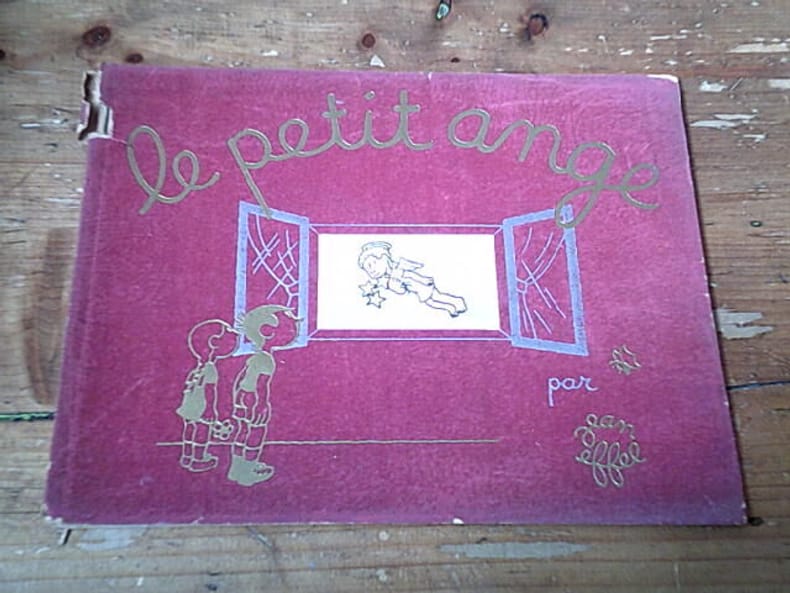 Un petit volume in 12 ( 16,5x11cm), reliure souple propre aux Livres de poches, 191 pages principalement occupées par des dessins en couleurs. Jolie Préface du cinéaste René CLAIR, où il écrit: “ Quand je rencontre Jean EFFEL je l’examine attentivement afin de savoir s’il ne cache pas des ailes repliées sous son veston.”Tout le monde connait bien sur le style graphique de Jean EFFEL et son univers poético-politique” mais la particulerité de cet exemplaire est qu’il s’ouvre sur un bel ENVOI de Jean EFFEL à un destinataire illustre, consistant en un dessin (un petit visage d’ange joufflu, une fleur à la bouche) accompagné de ces simples mots: A André MALRAUX.Exemplaire en état très satisfaisant.