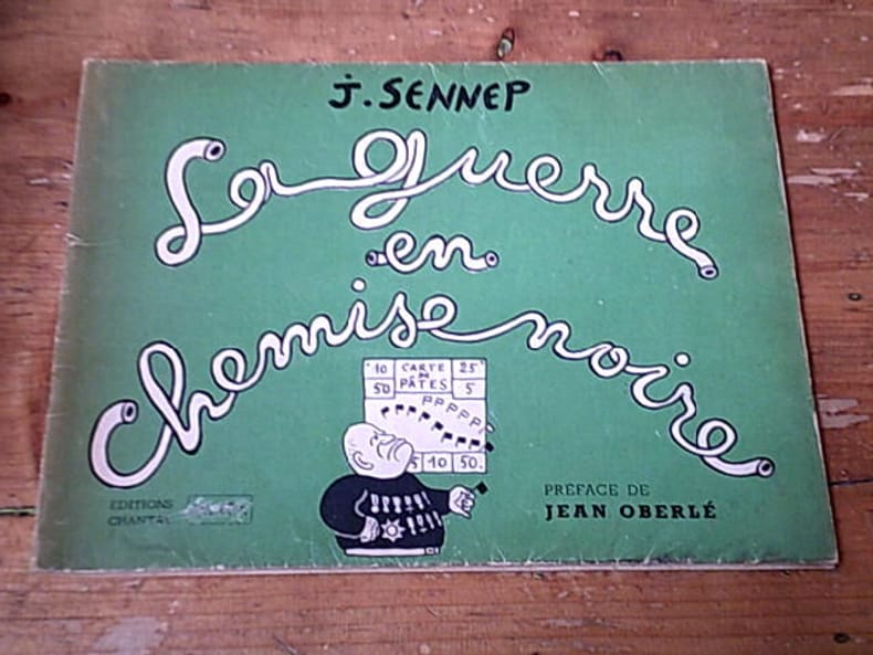 In 8 broché à l’italienne,couverture rempliée illustrée en couleurs,68 pages dont 64 de dessins de Sennep.Editions Chantal 1945