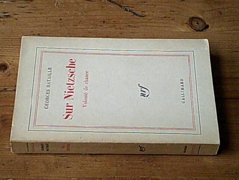Édition originale. Exemplaire du service de presse sur papier d’édition. Précieux volume offert par l’auteur à Sylvia Bataille et à Jacques Lacan. Il porte cet envoi de Georges Bataille à l’encre bleue sur le faux-titre : à Sylvia et à Jacques affectueusement Georges Après avoir épousé l’auteur d’Histoire de l’œil en 1928, Sylvia Bataille partagea la vie de Jacques Lacan de 1938 jusqu’à la mort de ce dernier en 1981. Bataille gardera de bonnes relations avec son ex-épouse, et fut très proche de Lacan dans les années 1940. Sur le cercle intellectuel de Georges Bataille à cette époque, fréquenté entre autres par Jacques Lacan, Michel Leiris, Jean-Paul Sartre et Simone de Beauvoir, voir Élisabeth Roudinesco. Sur Nietzsche est un des livres fondamentaux de Bataille, peut-être même la clef de tous les autres. «Si toute la pensée athéologique repose en effet tout entière sur la notion de système, elle en est en même temps l’excès. Des textes comme Madame Edwarda, Le Mort, Le Petit représentent sans conteste cet excès. Le Coupable, L’Expérience intérieure, d’une certaine façon aussi. Bataille ne les a-t-il pas sciemment expurgés de ce qui justifiait cet excès à en ruiner le système ? Mais le système existe, et Sur Nietzsche, le dernier des grands livres de cette somme, le met à nu... » (Michel Surya) «À peu d’exceptions près, ma compagnie sur terre est celle de Nietzsche...», a écrit Bataille, et aussi : « Je suis le seul à me donner, non comme un glossateur de Nietzsche, mais comme étant le même que lui.» Benoît Goetz s’est interrogé sur cette «mêmeté» de Nietzsche et de Bataille, «qui n’est pas identité, dont l’origine n’est pas d’ordre mimétique... Ou si identité il y a, elle est peut-être du même ordre que celle dont parlait Deleuze : “la grande identité” de Spinoza et de Nietzsche ». Cette « mêmeté », poursuit-il, « n’est pas sans rapport avec ce que Nietzsche a nommé “éternel retour du même”, et qui n’a rien à voir, comme Deleuze l’a bien souligné, avec la très vieille hypothèse de cycles cosmiques répétitifs. À travers la répétition tout change et varie. Bataille n’est donc pas un clone de Nietzsche, qui ne réclamait ni disciples ni épigones, mais un écho. Bataille fait écho à Nietzsche. On peut nommer ce phénomène “parodie”, même si le mot n’est plus à la mode. Cela signifie qu’une pensée et une écriture, un mode de vie, un ethos glissent le long d’autres textes et d’autres pensées, au point de les épouser, comme un anneau un autre anneau, mais sans confusion aucune. Noces contre nature, celles de la guêpe et de l’orchidée. Mélodie éternelle qui se chante elle-même.» Le saut nietzschéen dont il faut faire l’expérience, consisterait, pour Bataille, «à mordre la tête du serpent de l’esprit de vengeance (pour reprendre l’image du Zarathoustra), et à se débarrasser du ressentiment contre le temps et le “il était”. C’est le fond sans fond de la pensée du retour. [...] Comme Nietzsche, Bataille est un penseur du plus grand sérieux qui se renverse en jeu et en danse. » La pensée de Nietzsche, saisie à travers le prisme de l’œuvre de Bataille, « est por- teuse d’une affirmation qui n’est affirmation que de l’affirmation, et non d’une doctrine particulière. La “doctrine” de l’éternel retour est sans contenu, à la différence, sans doute, de la doctrine de la volonté de puissance. Pour parler comme Heidegger, cette dernière énonce quelque chose concernant l’être de l’étant. La “doctrine” de l’éternel retour, la “grande pensée” n’énonce rien de tel. Elle est l’affirmation d’une manière d’être, d’une manière de l’être lui-même, qui ne comporte rien de fixe, donc rien d’étant et qui par conséquent nous emporte nous-même...» Comme l’écrit Nietzsche dans Le Gai savoir, « L’impérieux jeu du monde / mêle l’être et l’apparence / L’éternelle extravagance / Nous y mêle pêle-mêle. » (trad. de Pierre Klossowski). Marges un peu jaunies, infimes traces d’usure à la couverture. Provenance : Sylvia Maklès (1908-1993) et Jacques Lacan (1901-1981), puis par descendance. – Sotheby’s, cat. Livres et manuscrits, 15 décembre 2020, lot 86. Références : Élisabeth Roudinesco, Jacques Lacan, Paris, Fayard,1993, pp.172-229, passim.– Michel Surya, Georges Bataille, la mort à l’œuvre, Paris, Gallimard, 1992 (rééd. 2012), p. 390, passim. – Benoît Goetz, « Éternel retour de Nietzsche », in Le Portique, revue de philosophie et de sciences humaines, no 29, 2012 (en ligne).