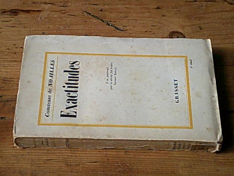Edition originale tirée à 724 exemplaires, un des 30 sur vélin d'Arches (numéroté "Arches 15")."Si Anna de Noailles mérite dêtre lue, cest bien sûr pour léminente valeur de son oeuvre mais aussi, justement, par la résonance profondément humaine de celle-ci. Sceptique, voire nihiliste, passionnée et désespérée, elle rejoint les doutes les plus contemporains par son interrogation douloureuse dune condition humaine vouée au désastre autant quà lextase. Cette actualité paradoxale de la sensibilité dune femme appartenant à un monde aujourdhui disparu, on la retrouve à chaque page 'dExactitudes', recueil de proses paru trois ans avant sa mort. On y admire la franchise dune inspiration qui ne recule pas devant les aspects les plus physiques aussi bien de lamour que de la mort." (Ed. La Coopérative).Bel exemplaire, parfaitement conservé, non rogné, non coupé.