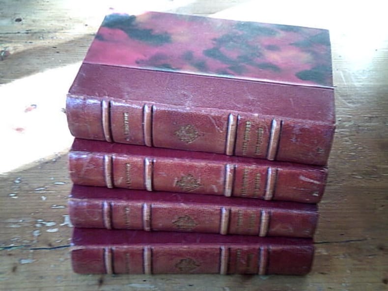 Perrin 1932 362+384+399+391 pages Paris. in-8. 1932. Demi-Cuir grenat titrés aux dos en lettres dorées. 362+384+399+391 pages. 1932-1936 - Avec illustrations en noir hors-texte