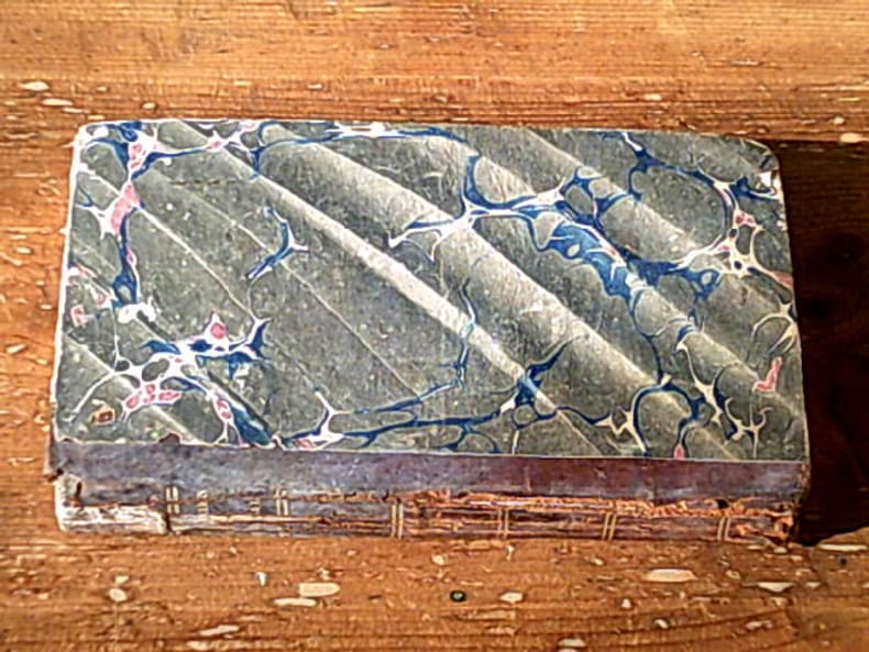 Mauvais état avec des manques de cuir au dos de la reliure. Intérieur sali avec rousseurs et d'anciennes taches d'eau