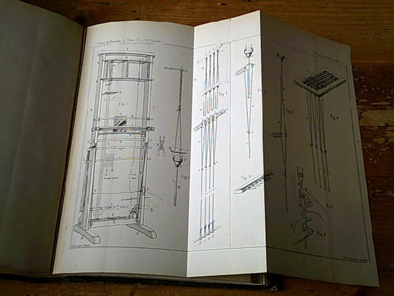 Petit In-4. Sans date. Demi-Chagrin marron Dos à faux-nerfs titré en lettres dorées avec motifs dorés. Fin XIXème - Album de planches en trois tomes - Complet des 131 planches dont une en couleurs et certaines dépliantes