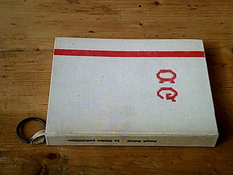 Reliure toile ornée de l'éditeur (toile écrue avec une bande rouge et des initiales façon torchon de cuisine, un anneau de métal en haut du dos pour suspendre l'ouvrage), signet, 19X13 cm, 1965, 108 pages, Robert Morel éditeur. Une phrase au stylo page de faux-titre, très bon état.