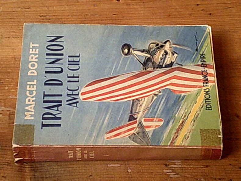 Éditions France-Empire 1954 312 pages in-8. 1954. broché sous jaquette. 312 pages. Avec figures et illustrations en noir - « Trait d'union avec le ciel » est le récit autobiographique de Marcel Doret pilote breveté en 1918 et figure majeure de l'aviation française. L'ouvrage publié peu après sa mort retrace sa carrière de pilote d'essai et d'as de la voltige durant laquelle il a battu dix-huit records du monde et transmet l'émotion de la conquête de l'air à une époque pionnière