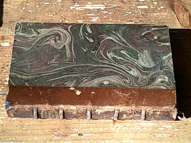 Etat correct malgré le cuir frotté. Intérieur propre avec papier jauni