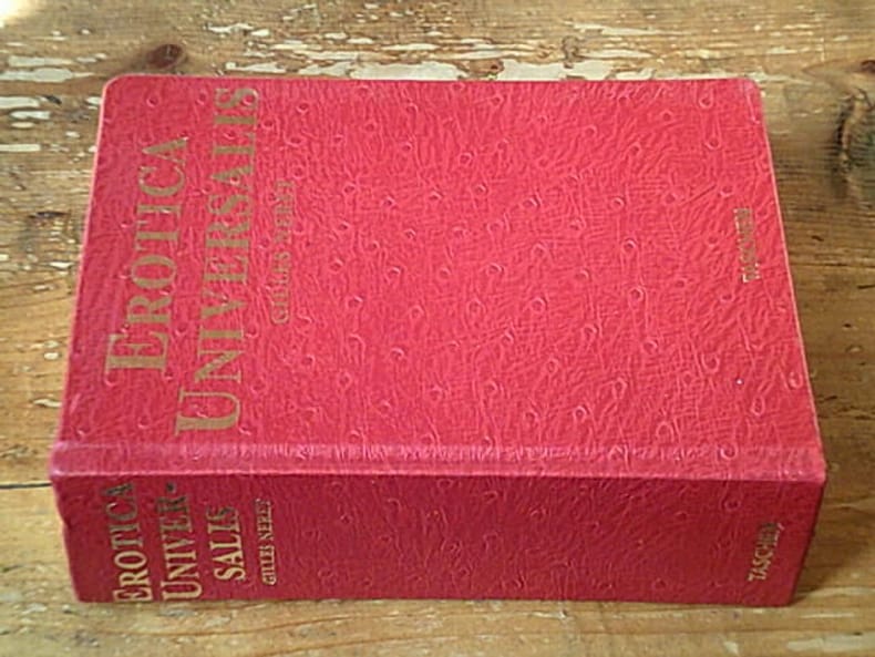 Taschen Köln 1994 Fort in-8 carré ( 200 X 145 mm ) de 755 pages, pleine basane "simili autruche" rouge à la bradel, toutes tranches dorées. Texte en Anglais, Allemand et Français. Très nombreuses illustrations en couleurs et en noir hors-texte. EDITION ORIGINALE. Très bel exemplaire de cet ouvrage en version "Luxe".Sommaire EROTICA: Antiqua - Classica - Revolutionnaria - Romantica - Artis Novae - Moderna.