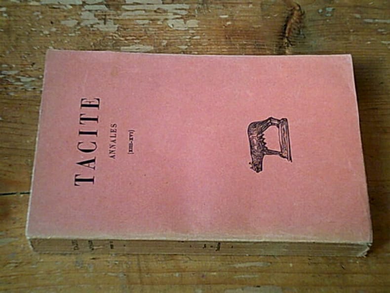 1957, Les Belles Lettres, collections des universités de France, petit in-8 broché, non paginé, couverture orangée, Annales XIII-XVI, TACITE, texte établi et traduit par Henri GOELZER, texte en grec et traduction | Etat : Bon état, couverture légèrement défraîchie et abimée, petit autocollant au bas du dos, traces de scotch, tampon sur la garde (Ref.: ref81779)