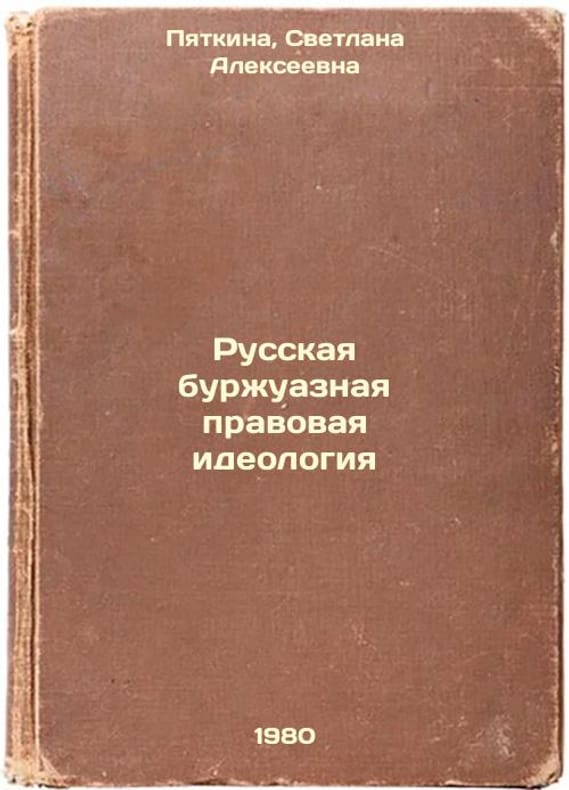 Short description: In Russian. Pyatkina, Svetlana Alekseevna. Russian bourgeois legal ideology. M: VYUSI,. Russkaya burzhuaznaya pravovaya ideologiya. In Russian /Russian bourgeois legal ideology. The image is provided for reference only. It may reflect condition of one of the available copies or only help in identifying the edition. Please feel free to contact us for a detailed description of the copies available. SKU1022026
