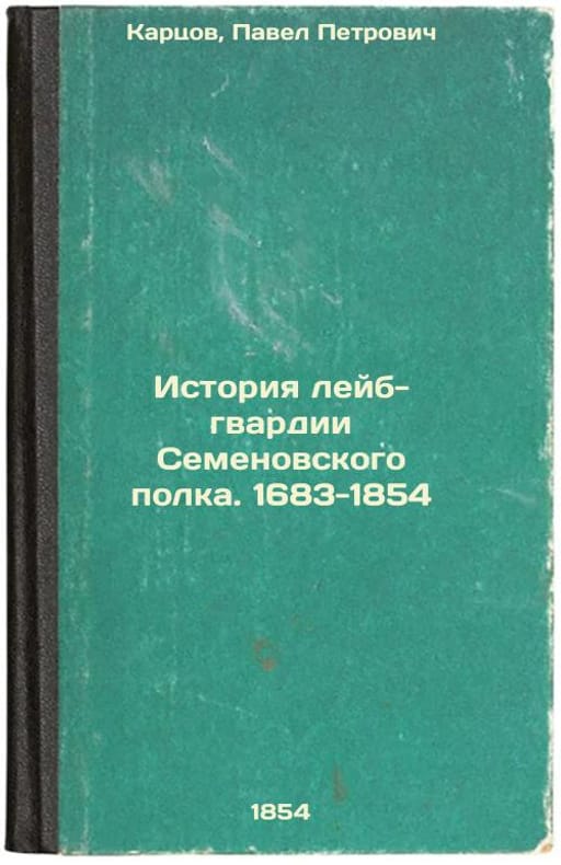 Short description: In Russian. Kartsov, Pavel Petrovich. History of the Labour Guard of the Semyonovsky regiment. 1683-1854: St. Petersburg: Type. Staff of military and educational establishments, 1852-1854. Istoriya leyb-gvardii Semenovskogo polka. 1683-1854. In Russian /History of the Labour Guard of the Semyon Regiment. 1683-1854. The image is provided for reference only. It may reflect condition of one of the available copies or only help in identifying the edition. Please feel free to contact us for a detailed description of the copies available. SKU2725271
