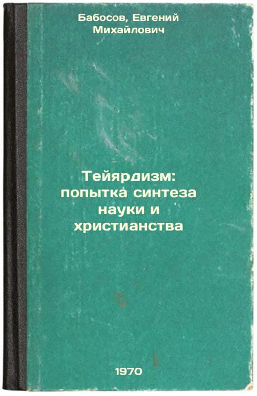 Short description: In Russian. Babosov, Evgeniy Mikhailovich. Tayardism: an attempt to synthesize science and Christianity. Minsk: The Superior School, 1970. Teyyardizm: popytka sinteza nauki i khristianstva. In Russian /Tayyardism: an attempt to synthesize science and Christianity. The image is provided for reference only. It may reflect condition of one of the available copies or only help in identifying the edition. Please feel free to contact us for a detailed description of the copies available. SKU3088448