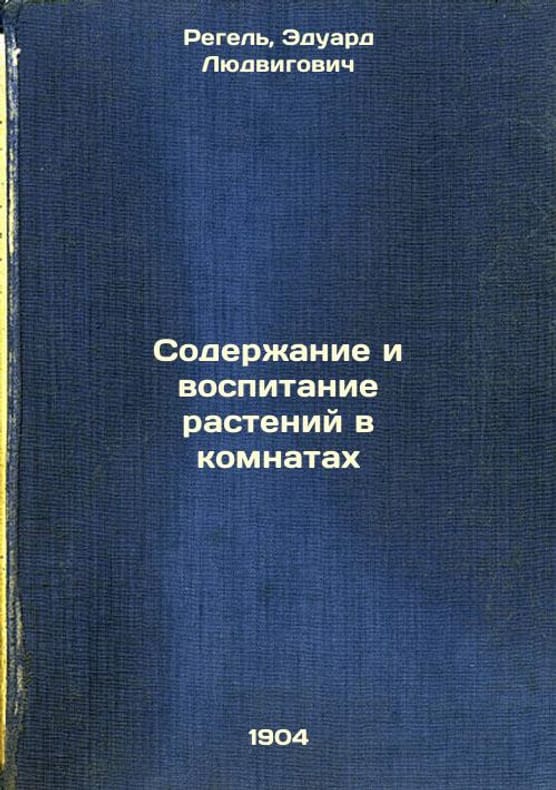 Short description: In Russian. Regel, Eduard Lyudvigovich. Plant maintenance and education in rooms. St. Petersburg: type. E. Prats, 1871-1904. Soderzhanie i vospitanie rasteniy v komnatakh. In Russian /Keeping and nurturing plants in rooms. The image is provided for reference only. It may reflect condition of one of the available copies or only help in identifying the edition. Please feel free to contact us for a detailed description of the copies available. SKU3509694