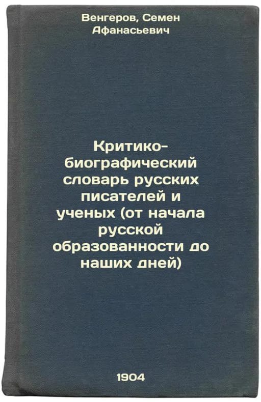 Short description: In Russian. Vengerov, Semyon Afanasyevich. Critical-Biographical Dictionary of Russian Writers and Scientists (from the beginning of Russian education to the present day). St. Petersburg: Semen. typo-lit. (I. Efron), 1889-1904. Kritiko-biograficheskiy slovar' russkikh pisateley i uchenykh (ot nachala russkoy obrazovannosti do nashikh dney). In Russian /Critical-Biographical Dictionary of Russian Writers and Scientists (from the beginning of Russian education to the present day). The image is provided for reference only. It may reflect condition of one of the available copies or only help in identifying the edition. Please feel free to contact us for a detailed description of the copies available. SKU3513863