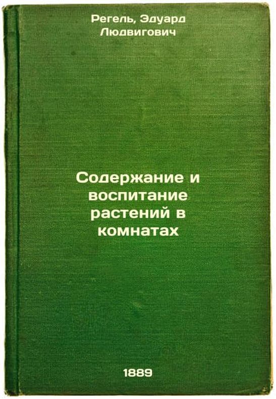 Short description: In Russian. Regel, Eduard Lyudvigovich. Plant maintenance and education in rooms. St. Petersburg: type. E. Prats, 1871-1904. Soderzhanie i vospitanie rasteniy v komnatakh. In Russian /Keeping and nurturing plants in rooms. The image is provided for reference only. It may reflect condition of one of the available copies or only help in identifying the edition. Please feel free to contact us for a detailed description of the copies available. SKU3509694