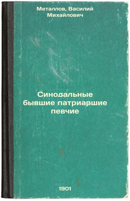 Short description: In Russian. Metallov, Vasily Mikhailovich. Synodal Former Patriarchal Singers: St. Petersburg: Stolichnych, z1898-z1901-1901. Sinodal'nye byvshie patriarshie pevchie. In Russian /Synodal former patriarchal singers. The image is provided for reference only. It may reflect condition of one of the available copies or only help in identifying the edition. Please feel free to contact us for a detailed description of the copies available. SKU3519827