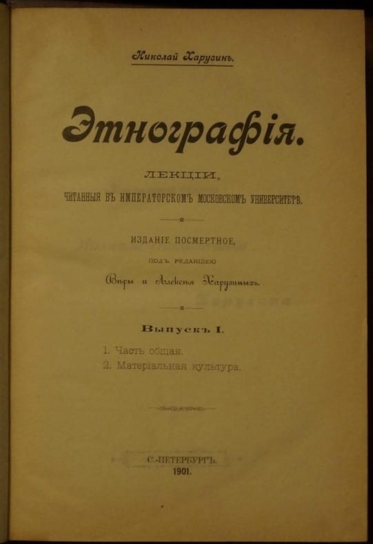 Short description: In Russian. Kharuzin, Nikolai Nikolaevich. Ethnography. St. Petersburg: State Type., 1901-1905. The image is provided for reference only. It may reflect condition of one of the available copies or only help in identifying the edition. Please feel free to contact us for a detailed description of the copies available. SKU3523030