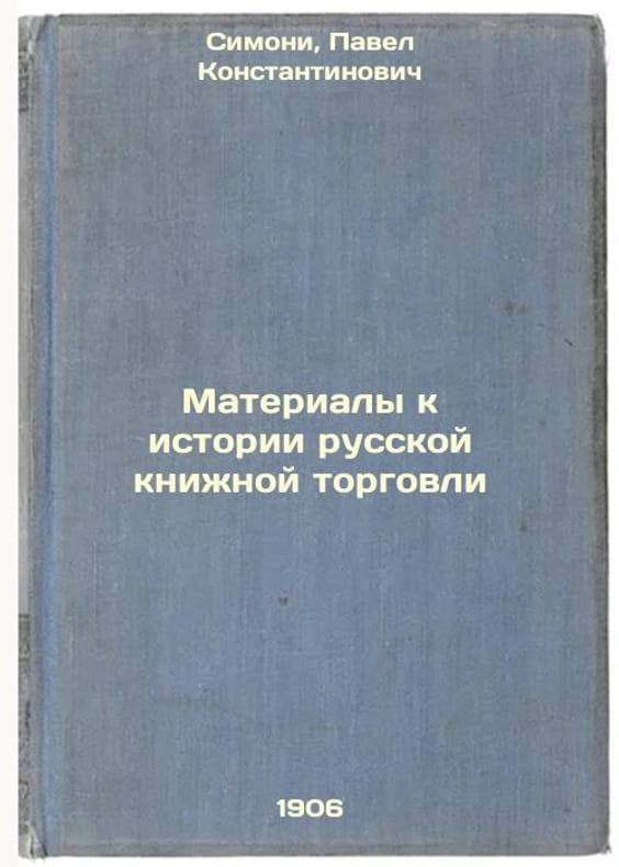Short description: In Russian. Simoni, Pavel Konstantinovich. Materials to the History of Russian Book Trade. St. Petersburg: edition of the journal. Book Exchange, 1906. Materialy k istorii russkoy knizhnoy torgovli. In Russian /Materials to the History of Russian Book Trade. The image is provided for reference only. It may reflect condition of one of the available copies or only help in identifying the edition. Please feel free to contact us for a detailed description of the copies available. SKU3526966