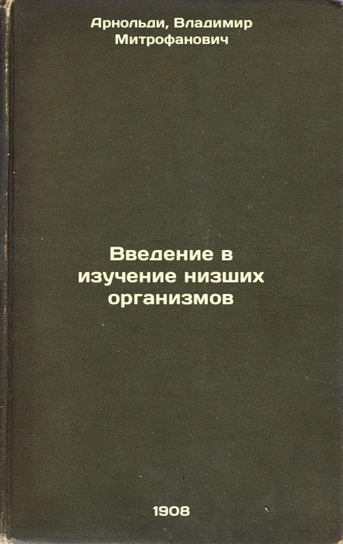 Short description: In Russian. Arnoldi, Vladimir Mitrofanovich. An introduction to the study of lower organisms. Kharkiv: Russian typolyte, 1908. Vvedenie v izuchenie nizshikh organizmov. In Russian /An introduction to the study of lower organisms. The image is provided for reference only. It may reflect condition of one of the available copies or only help in identifying the edition. Please feel free to contact us for a detailed description of the copies available. SKU3527925