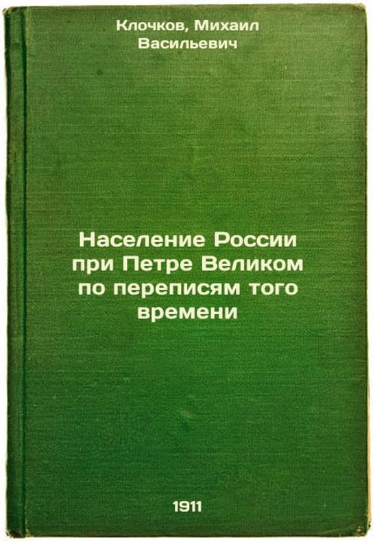 Short description: In Russian. Klochkov, Mikhail Vasilievich. Population of Russia under Peter the Great according to the censuses of that time. St. Petersburg: Senate type., 1911. Naselenie Rossii pri Petre Velikom po perepisyam togo vremeni. In Russian /Population of Russia under Peter the Great according to the censuses of that time. The image is provided for reference only. It may reflect condition of one of the available copies or only help in identifying the edition. Please feel free to contact us for a detailed description of the copies available. SKU3532783
