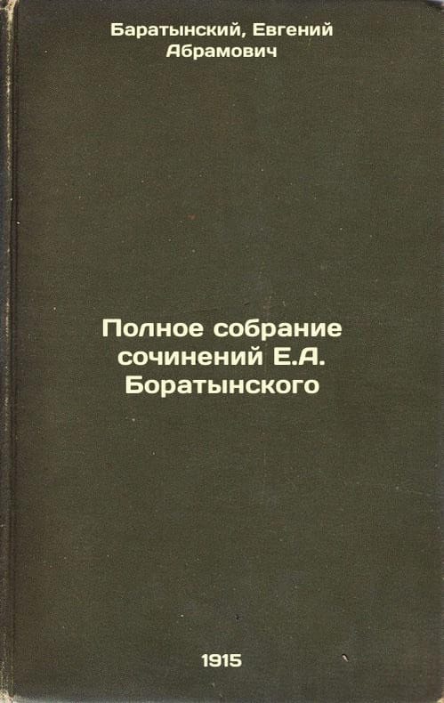 Short description: In Russian. Baratynsky, Evgeniy Abramovich. The Complete Collection of Works by E.A. Boratynsky. St. Petersburg: The Degree of Graceful Literature by Imp. Akad. sciences, 1915. Polnoe sobranie sochineniy E.A. Boratynskogo. In Russian /The Complete Collection of Works by E.A. Boratynsky. The image is provided for reference only. It may reflect condition of one of the available copies or only help in identifying the edition. Please feel free to contact us for a detailed description of the copies available. SKU3538032