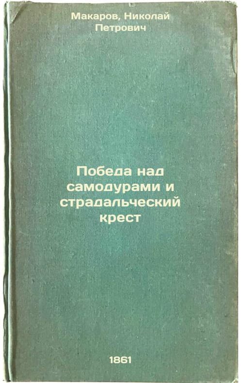 Short description: In Russian. Makarov, Nikolai Petrovich. Victory over narcissism and the suffering cross: St. Petersburg: ed. N. Makarov, 1861. Pobeda nad samodurami i stradal'cheskiy krest. In Russian /The victory over narcissism and the suffering cross. The image is provided for reference only. It may reflect condition of one of the available copies or only help in identifying the edition. Please feel free to contact us for a detailed description of the copies available. SKU3574799