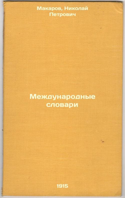 Short description: In Russian. Makarov, Nikolai Petrovich. International Dictionaries. St. Petersburg: Type. Trenke and Fusno, 1915. Please feel free to contact us for a detailed description of the copies available. SKU3604177