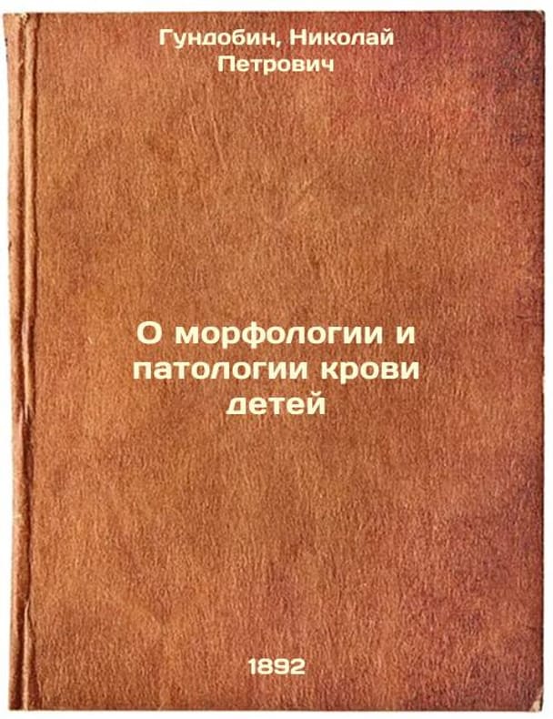Short description: In Russian. Gundobin, Nikolai Petrovich. On the morphology and pathology of children's blood. St. Petersburg: type Public utility, 1892. O morfologii i patologii krovi detey. In Russian /On the morphology and pathology of children's blood. The image is provided for reference only. It may reflect condition of one of the available copies or only help in identifying the edition. Please feel free to contact us for a detailed description of the copies available. SKU3630866