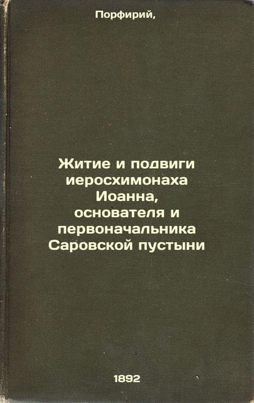 Short description: In Russian. Porfiry,. The life and feats of Hieroschymonk John, the founder and chief of the Sarov Desert. Moore: Tipo-lit. N. V. Zvorykin, 1892. Please feel free to contact us for a detailed description of the copies available. SKU3631733