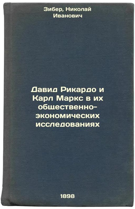 Short description: In Russian. Sieber, Nikolai Ivanovich. David Ricardo and Karl Marx in their socio-economic research: St. Petersburg: vol. I.D. Sytin. Department of N.A. Rubakin, 1897 (vol. 1898). David Rikardo i Karl Marks v ikh obshchestvenno-ekonomicheskikh issledovaniyakh. In Russian /David Ricardo and Karl Marx in their socio-economic studies. The image is provided for reference only. It may reflect condition of one of the available copies or only help in identifying the edition. Please feel free to contact us for a detailed description of the copies available. SKU3641084