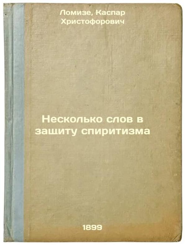 Short description: In Russian. Lomise, Kaspar Khristoforovich. A few words in defense of spiritualism. Tiflis: type. Lieberman, 1899. Neskol'ko slov v zashchitu spiritizma. In Russian /A few words in defense of spiritualism. The image is provided for reference only. It may reflect condition of one of the available copies or only help in identifying the edition. Please feel free to contact us for a detailed description of the copies available. SKU3645425