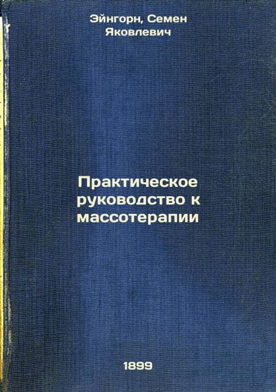 Short description: In Russian. Eingorn, Semyon Yakovlevich. Practical Guide to Mass Therapy. St. Petersburg: type. A.M. Mendelevich, 1899. Prakticheskoe rukovodstvo k massoterapii. In Russian /Practical Guide to Mass Therapy. The image is provided for reference only. It may reflect condition of one of the available copies or only help in identifying the edition. Please feel free to contact us for a detailed description of the copies available. SKU3672955