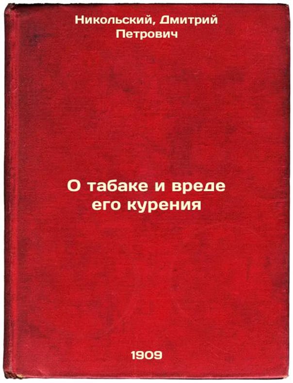 Short description: In Russian. Nikolsky, Dmitry Petrovich. On Tobacco and the Harms of Smoking. Moscow: Mediator, 1909. The image is provided for reference only. It may reflect condition of one of the available copies or only help in identifying the edition. Please feel free to contact us for a detailed description of the copies available. SKU3675390