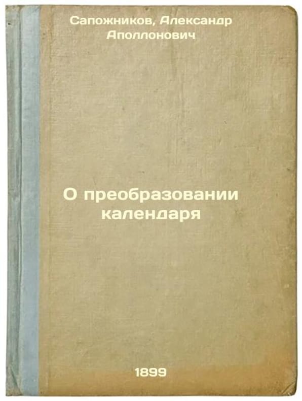 Short description: In Russian. Sapozhnikov, Alexander Apollonovich. On the Calendar Transformation. St. Petersburg: Type. A.P. Lopukhina, 1899. Please feel free to contact us for a detailed description of the copies available. SKU3689987
