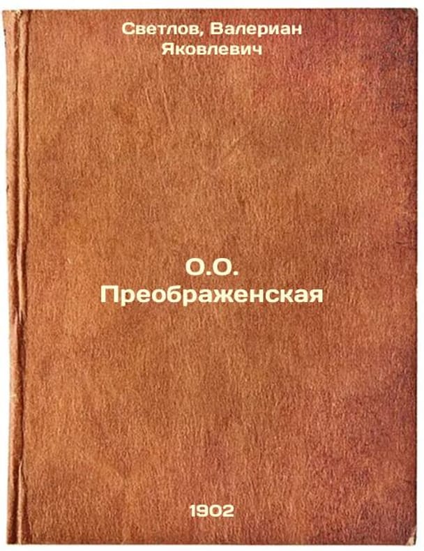 Short description: In Russian. Svetlov, Valerian Yakovlevich. O.OPreobrazhenskaya. St. Petersburg: type. A.F. Marx, 1902. The image is provided for reference only. It may reflect condition of one of the available copies or only help in identifying the edition. Please feel free to contact us for a detailed description of the copies available. SKU3708235