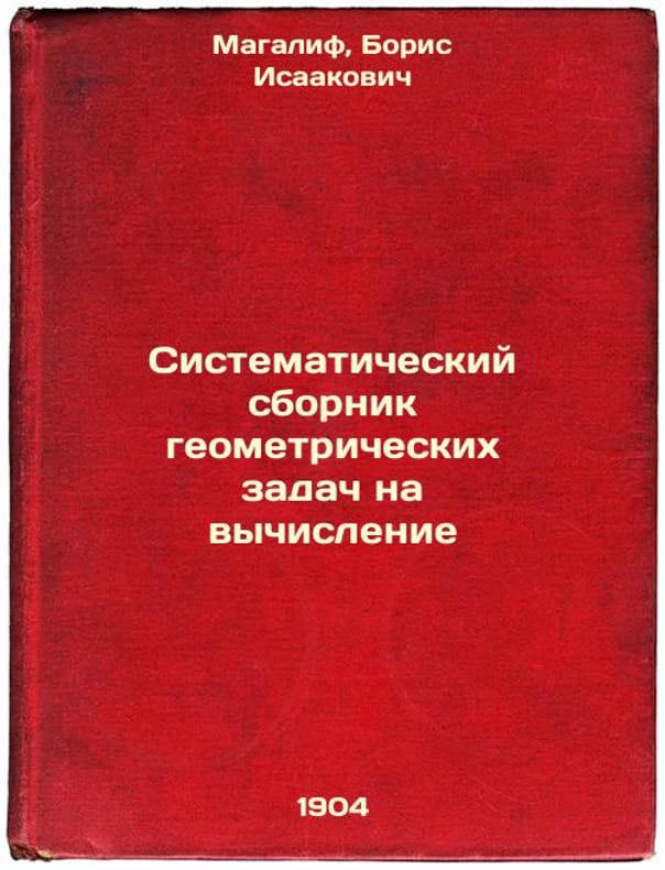 Short description: In Russian. Magalif, Boris Isaakovich. Systematic compilation of geometric tasks for computation. Moscow: book magician V.V. Dumnov, p / f Nasl brothel. Salaevs, 1904. Please feel free to contact us for a detailed description of the copies available. SKU3722370