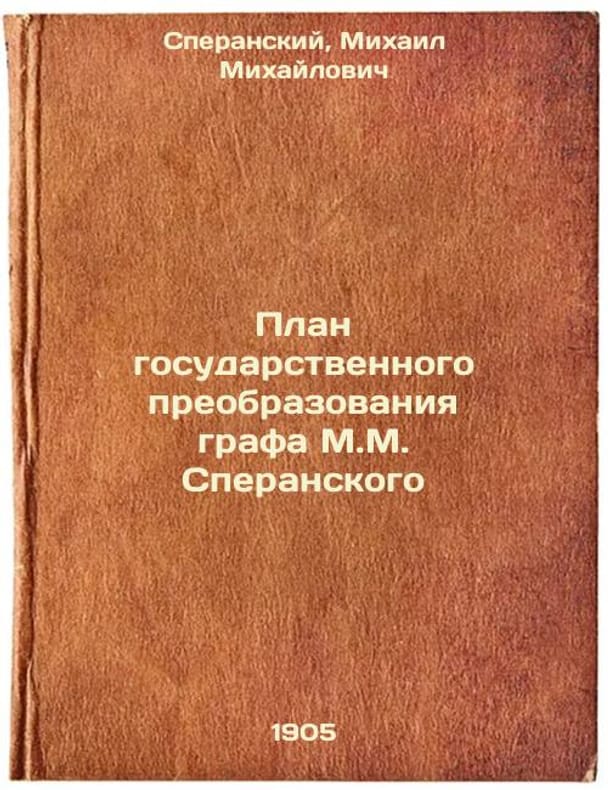 Short description: In Russian. Speransky, Mikhail Mikhailovich. The Plan for the State Transformation of Count M.M. Speransky: Moscow: Russian Thought, 1905. Plan gosudarstvennogo preobrazovaniya grafa M.M. Speranskogo. In Russian /Count M.M. Speransky's State Transformation Plan. The image is provided for reference only. It may reflect condition of one of the available copies or only help in identifying the edition. Please feel free to contact us for a detailed description of the copies available. SKU3730627