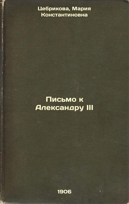 Short description: In Russian. Tsebrikova, Maria Konstantinovna. Letter to Alexander III: St. Petersburg: The Central Typology of M.Ya. Minkov, 1906. The image is provided for reference only. It may reflect condition of one of the available copies or only help in identifying the edition. Please feel free to contact us for a detailed description of the copies available. SKU3739990