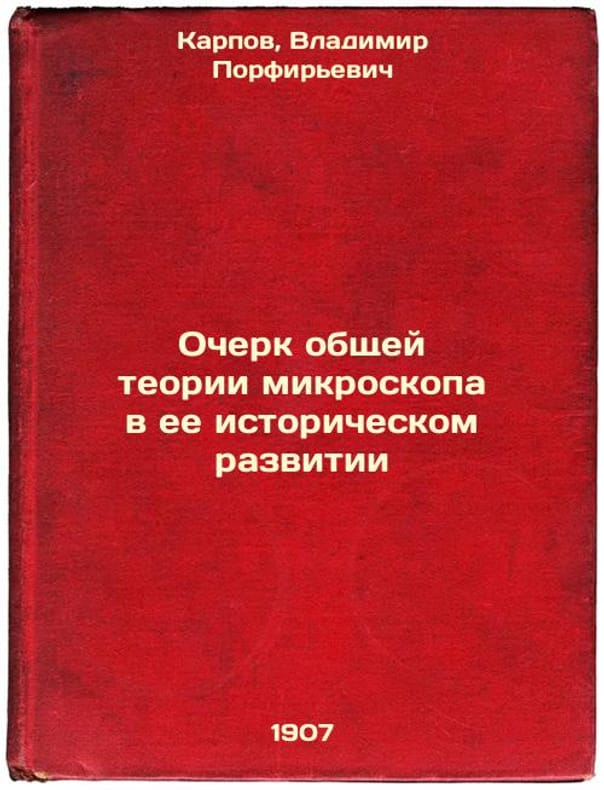 Short description: In Russian. Karpov, Vladimir Porfirievich. An Essay on the General Theory of the Microscope in its Historical Development. Moscow: The Type of A.I. Mamontov, 1907. Ocherk obshchey teorii mikroskopa v ee istoricheskom razvitii. In Russian /An outline of the general theory of the microscope in its historical development. The image is provided for reference only. It may reflect condition of one of the available copies or only help in identifying the edition. Please feel free to contact us for a detailed description of the copies available. SKU3740840