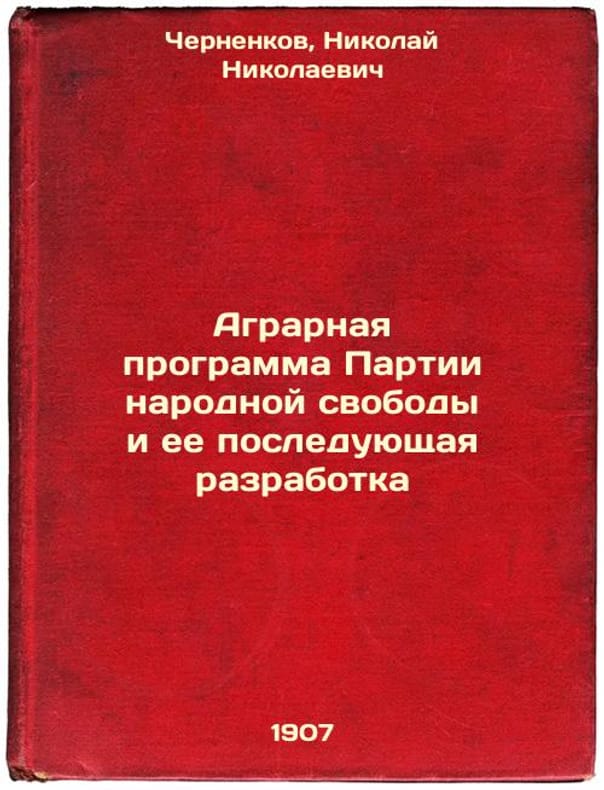 Short description: In Russian. Chernenkov, Nikolai Nikolaevich. the agrarian program of the People's Freedom Party and its subsequent development. St. Petersburg: type of t-v Public utility, 1907. Please feel free to contact us for a detailed description of the copies available. SKU3745455