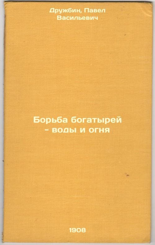 Short description: In Russian. Druzhbin, Pavel Vasilievich. Fighting the Athletes - Water and Fire. Moscow: vol. I.D. Sytin, 1908. Bor'ba bogatyrey - vody i ognya. In Russian /Fighting the Athletes - Water and Fire. The image is provided for reference only. It may reflect condition of one of the available copies or only help in identifying the edition. Please feel free to contact us for a detailed description of the copies available. SKU3748292