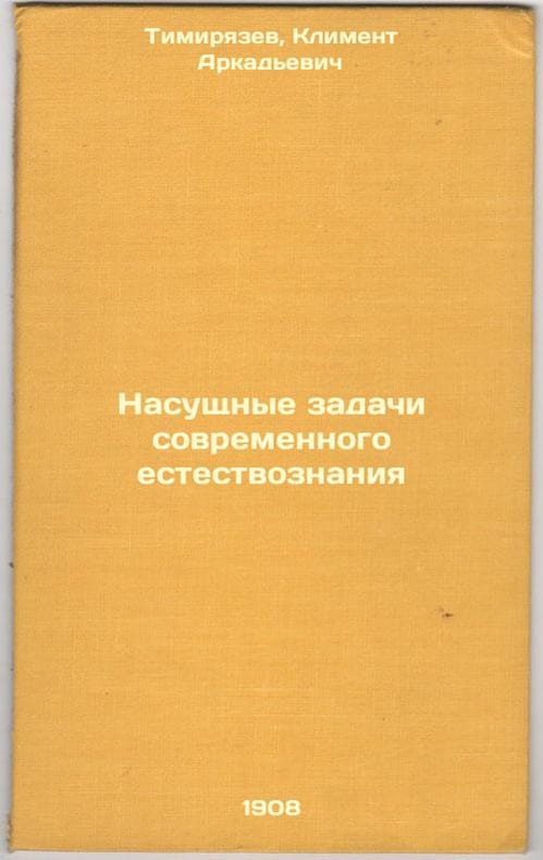 Short description: In Russian. Timiryazev, Kliment Arkadevich. The Urgent Challenges of Modern Natural Science. Moscow: V.N. Marakuev, 1908. Nasushchnye zadachi sovremennogo estestvoznaniya. In Russian /The Urgent Challenges of Modern Natural Science. The image is provided for reference only. It may reflect condition of one of the available copies or only help in identifying the edition. Please feel free to contact us for a detailed description of the copies available. SKU3753544