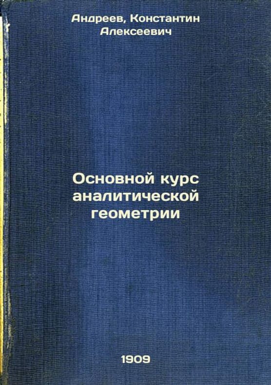 Short description: In Russian. Andreev, Konstantin Alekseevich. The Basic Course of Analytical Geometry. Moscow: Type. Moscow University, 1909. Osnovnoy kurs analiticheskoy geometrii. In Russian /Basic course in analytical geometry. The image is provided for reference only. It may reflect condition of one of the available copies or only help in identifying the edition. Please feel free to contact us for a detailed description of the copies available. SKU3755276