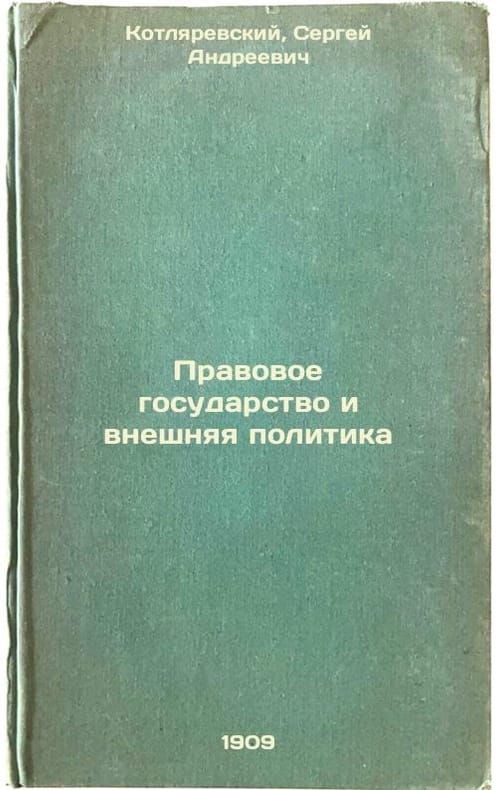 Short description: In Russian. Kotlyarevsky, Sergey Andreevich. The rule of law and foreign policy: Moscow: type. G. Lissner and D. Sobko, 1909. Pravovoe gosudarstvo i vneshnyaya politika. In Russian /The rule of law and foreign policy. The image is provided for reference only. It may reflect condition of one of the available copies or only help in identifying the edition. Please feel free to contact us for a detailed description of the copies available. SKU3758887