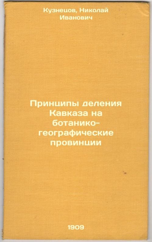 Short description: In Russian. Kuznetsov, Nikolai Ivanovich. Principles of division of the Caucasus into botanical-geographical provinces: St. Petersburg: type. Imp. Akad. sciences, 1909. Please feel free to contact us for a detailed description of the copies available. SKU3759065
