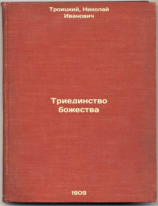 Short description: In Russian. Troitsky, Nikolai Ivanovich. The Trinity of Deity. Tula: type. Druzhinina, 1909. The image is provided for reference only. It may reflect condition of one of the available copies or only help in identifying the edition. Please feel free to contact us for a detailed description of the copies available. SKU3763310