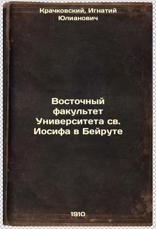 Short description: In Russian. Krachkovsky, Ignatius Yulianovich. Faculty of Oriental Studies at Saint Joseph University in Beirut. St. Petersburg: Senate Type., 1910. Vostochnyy fakul'tet Universiteta svIosifa v Beyrute. In Russian /Faculty of Oriental Studies at Saint Joseph University in Beirut. The image is provided for reference only. It may reflect condition of one of the available copies or only help in identifying the edition. Please feel free to contact us for a detailed description of the copies available. SKU3769000